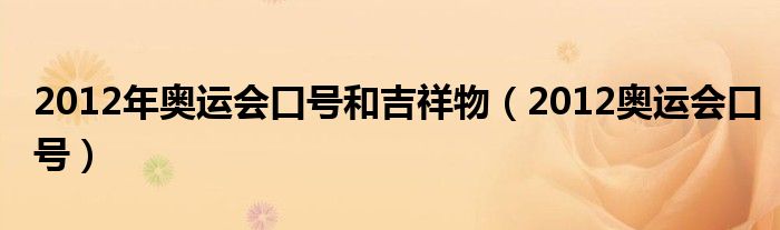 大家好,我是小跳,我来为大家解答以上问题。2012年奥运会口号和吉祥物,2012奥运会口号很多人还不知道,现在让我们一起来看看吧!