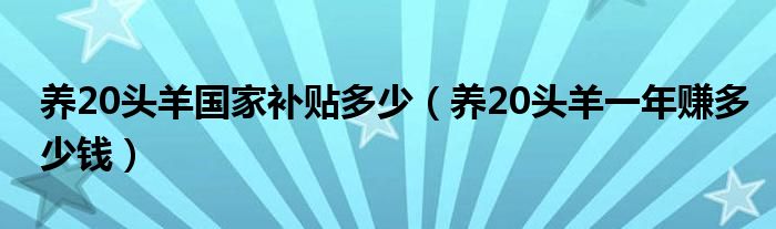 大家好,我是小跳,我来为大家解答以上问题。养20头羊国家补贴多少,养20头羊一年赚多少钱很多人还不知道,现在让我们一起来看看吧!