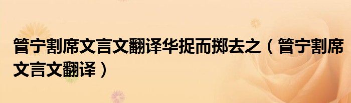 大家好,我是小跳,我来为大家解答以上问题。管宁割席文言文翻译华捉而掷去之,管宁割席文言文翻译很多人还不知道,现在让我们一起来看看吧!