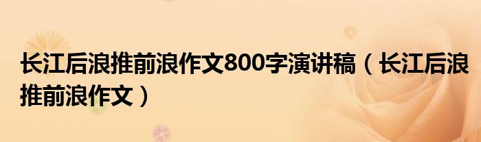 大家好,我是小跳,我来为大家解答以上问题。长江后浪推前浪作文800字演讲稿,长江后浪推前浪作文很多人还不知道,现在让我们一起来看看吧!