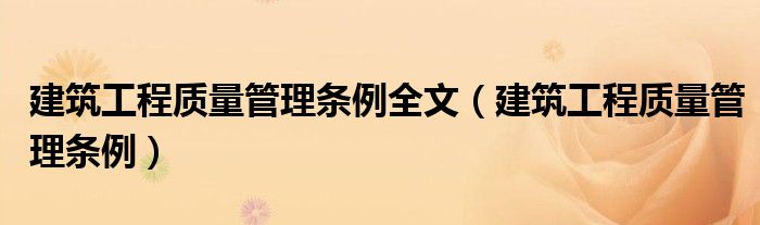 大家好,我是小跳,我来为大家解答以上问题。建筑工程质量管理条例全文,建筑工程质量管理条例很多人还不知道,现在让我们一起来看看吧!