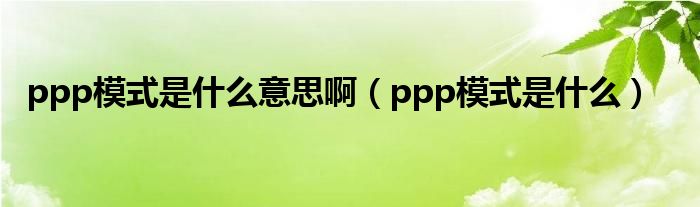 大家好,我是小跳,我来为大家解答以上问题。ppp模式是什么意思啊,ppp模式是什么很多人还不知道,现在让我们一起来看看吧!