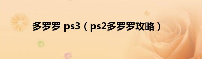 大家好,我是小跳,我来为大家解答以上问题。多罗罗 ps3,ps2多罗罗攻略很多人还不知道,现在让我们一起来看看吧!